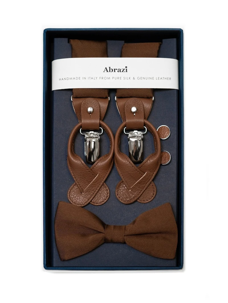 Inhoud: Bretels, vlinderdas, pochet en manchetknopen