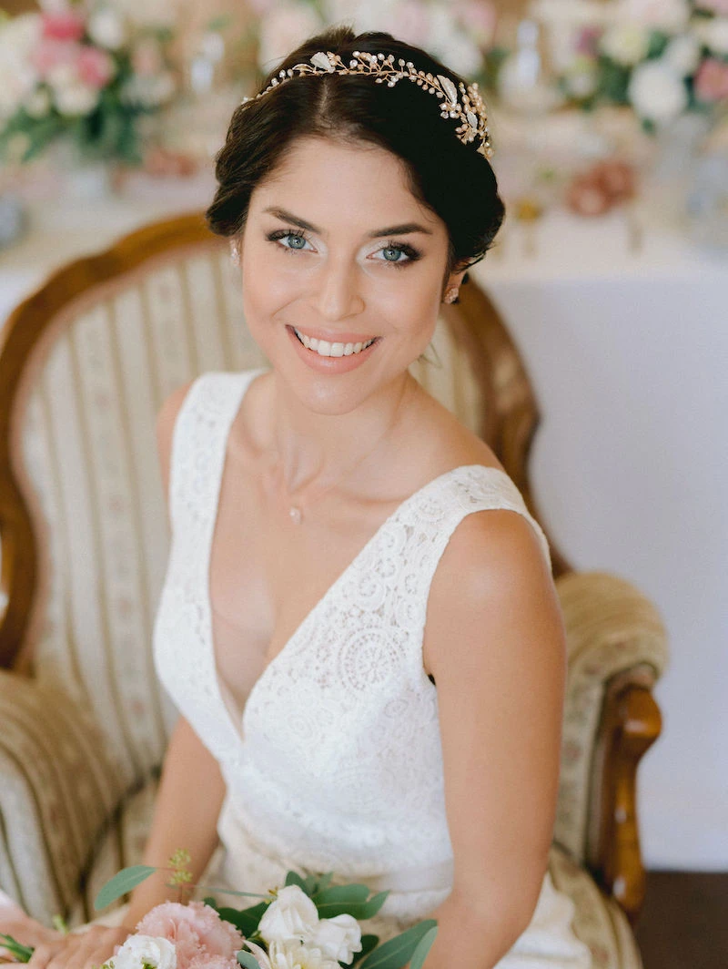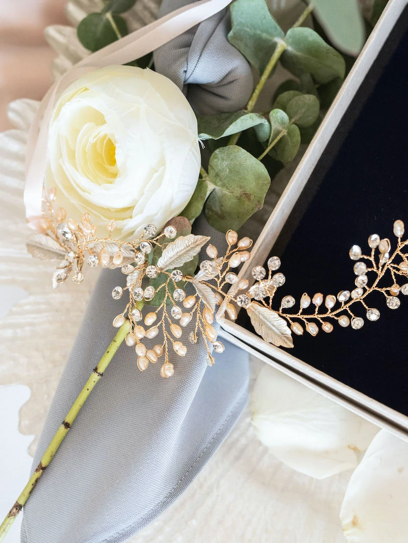 Decoratie: Versierd met roségouden blaadjes, rosé parels en strass steentjes