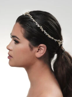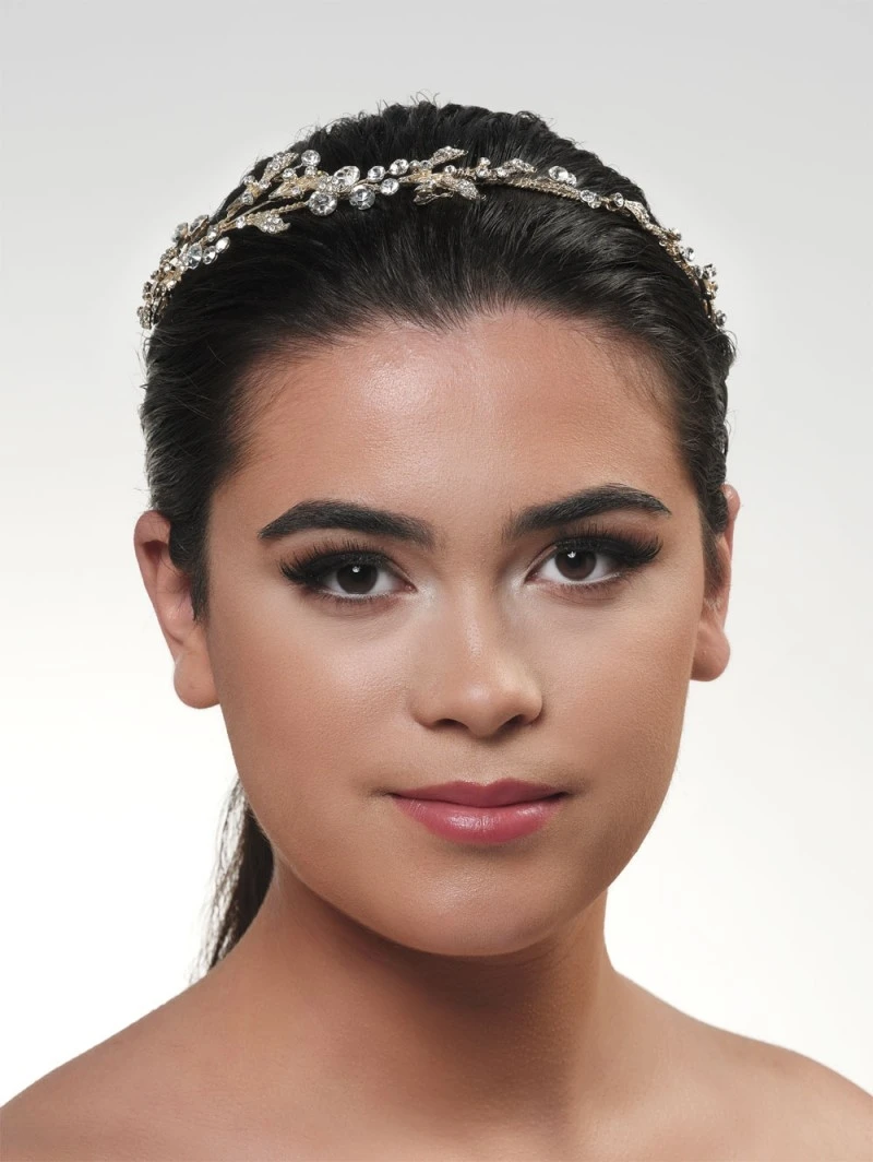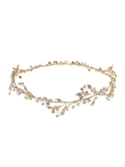 Details: Goudkleurig rond haarstreng met strass steentjes en goudkleurige bladeren