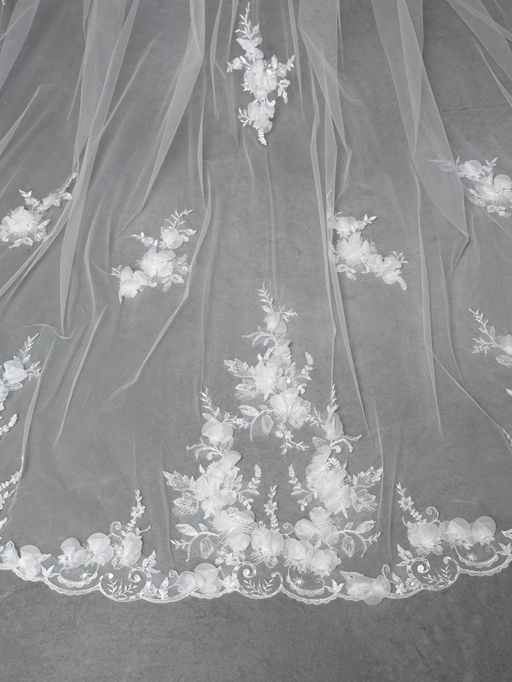 Artikelnummer: YMVHD 5451 Categorieën: Lengte, Sluiers Tags: 300 cm lang, bloemmotief, enkellaagse sluier, geschulpte rand, Ivoor, kant, medium tule, pailetten, parels, Poirier Enkellaagse Sluier met Luxe Bloemversiering S117-300/1/MED, sluier