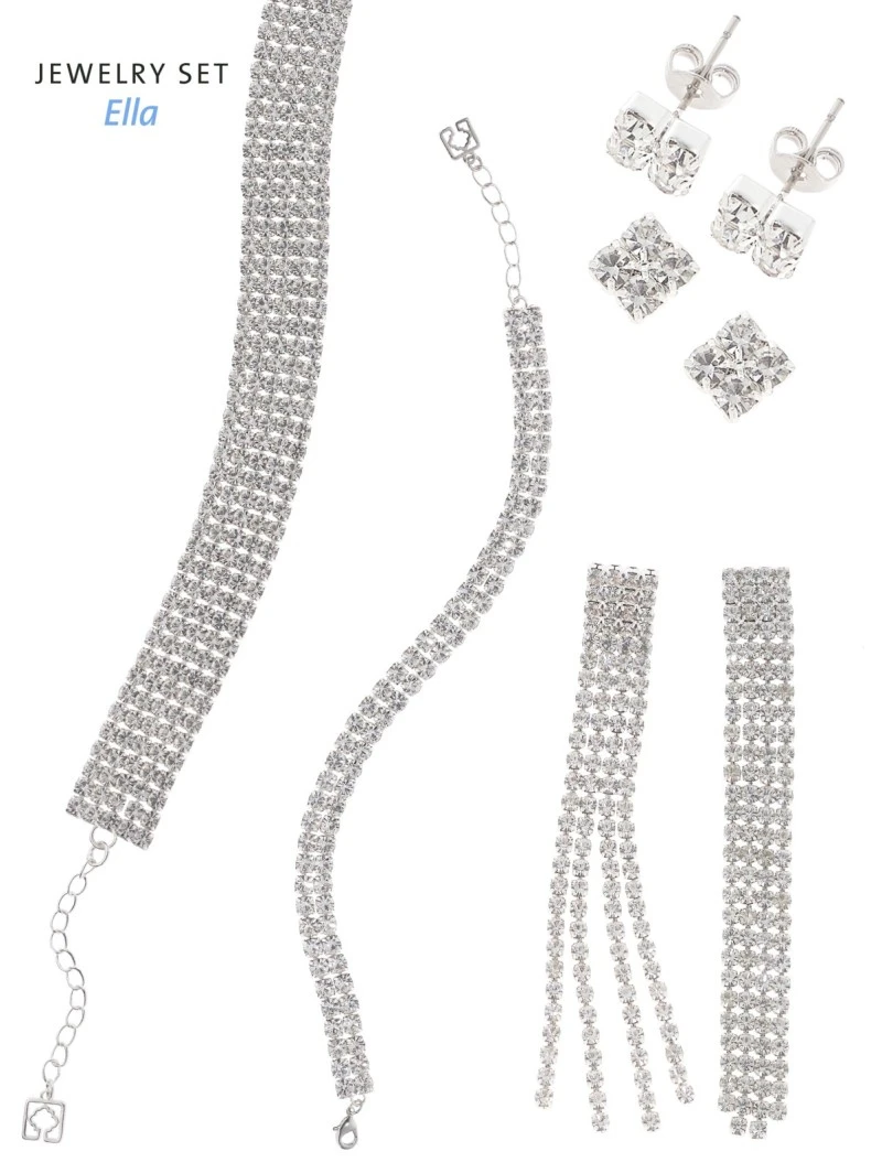Inhoud: Ketting, armband en 2 paar oorbellen