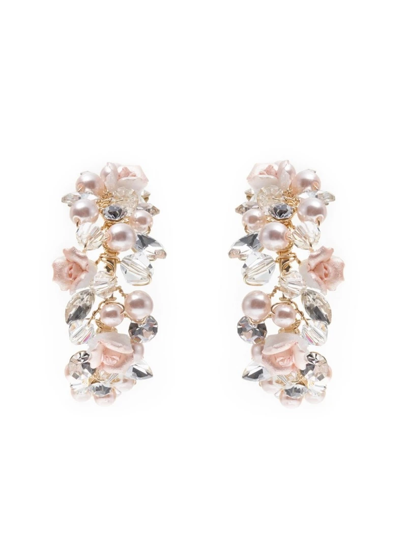 Details: Zilverkleurige met ivoorkleurige pareltjes, kristalletjes, ivoorkleurige porseleinen roosjes met strasssteentjes