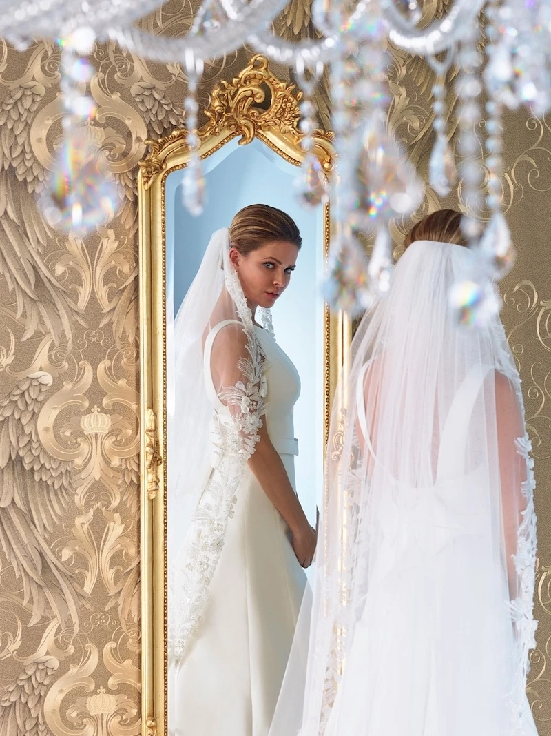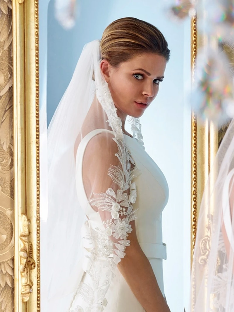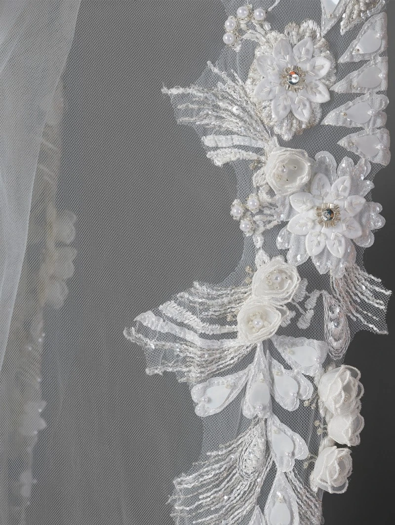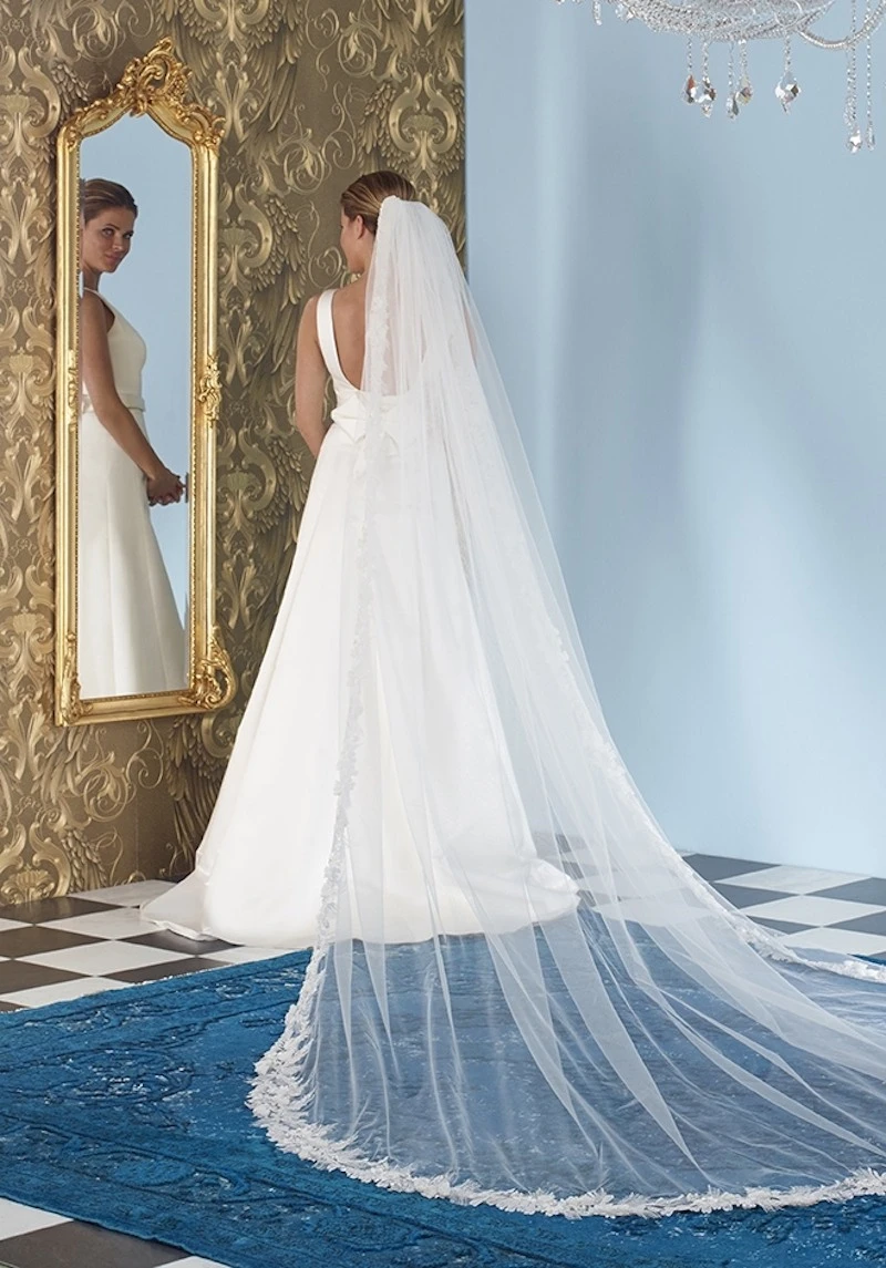 Artikelnummer: YMVHD 5463 Categorieën: Lengte, Sluiers Tags: 350 cm lang, bloemmotief, elegante sluier, kanten sluier, lange sluier, parels, sierlijke sluier, Sluier met kant S142-350/1/SOFT | Poirier, tule