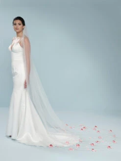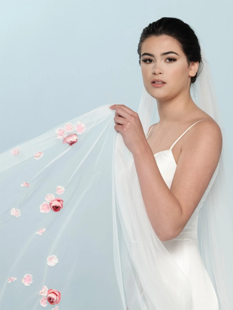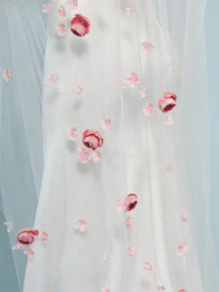 Sluier details: met roze rozen en andere kleine bloemetjes