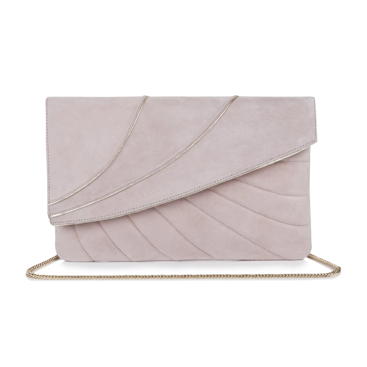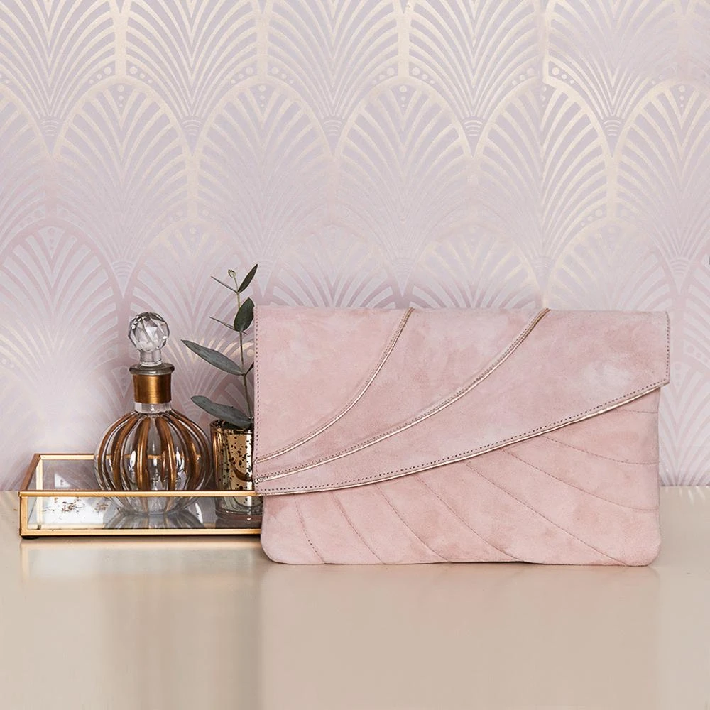 Model: Sabine Powder Pink Suede Clutch